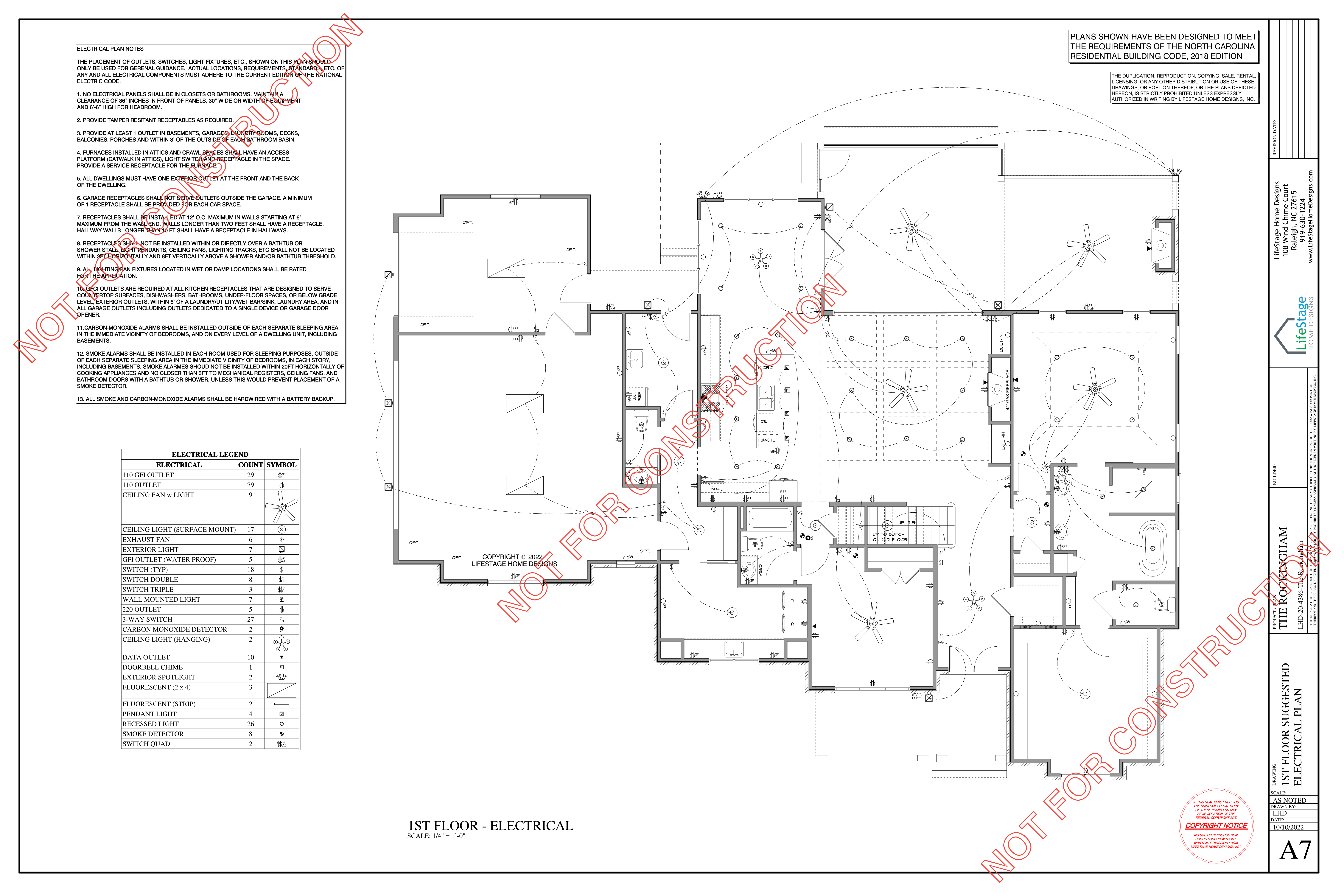 Lighting Plan: Suggested Electrical Plan showing light fixutres, outlet and switch placements (not available for all plans but can be added).
